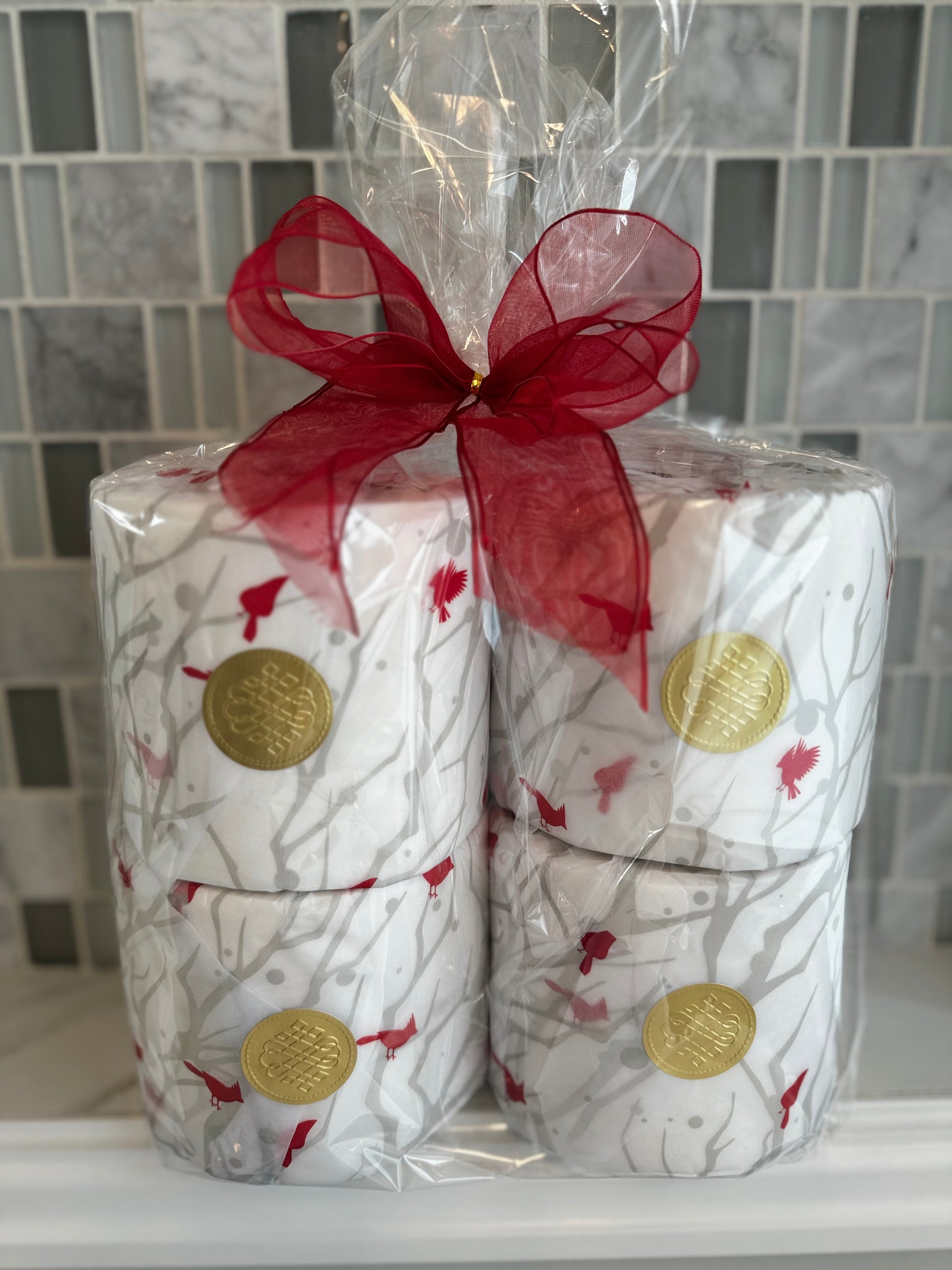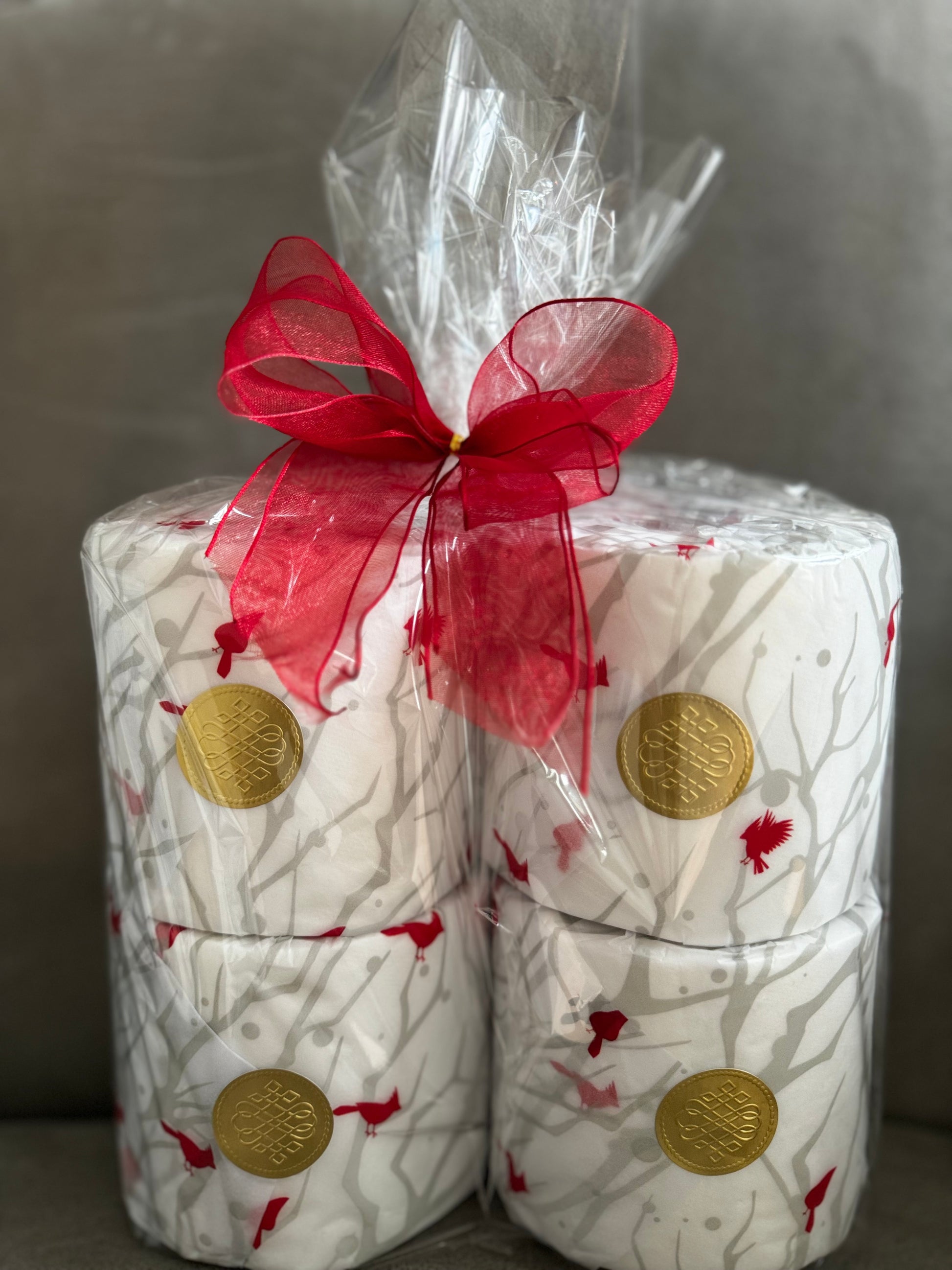 Elevate your holiday and winter decor with our Cardinal Christmas Bathroom Tissue Gift Package, designed to infuse your bathroom with seasonal cheer and detailed elegance. This enchanting set features premium bathroom tissue wrapped in a festive Cardinal Christmas-themed designed tissue, transforming an everyday item into a charming holiday detailed accent.