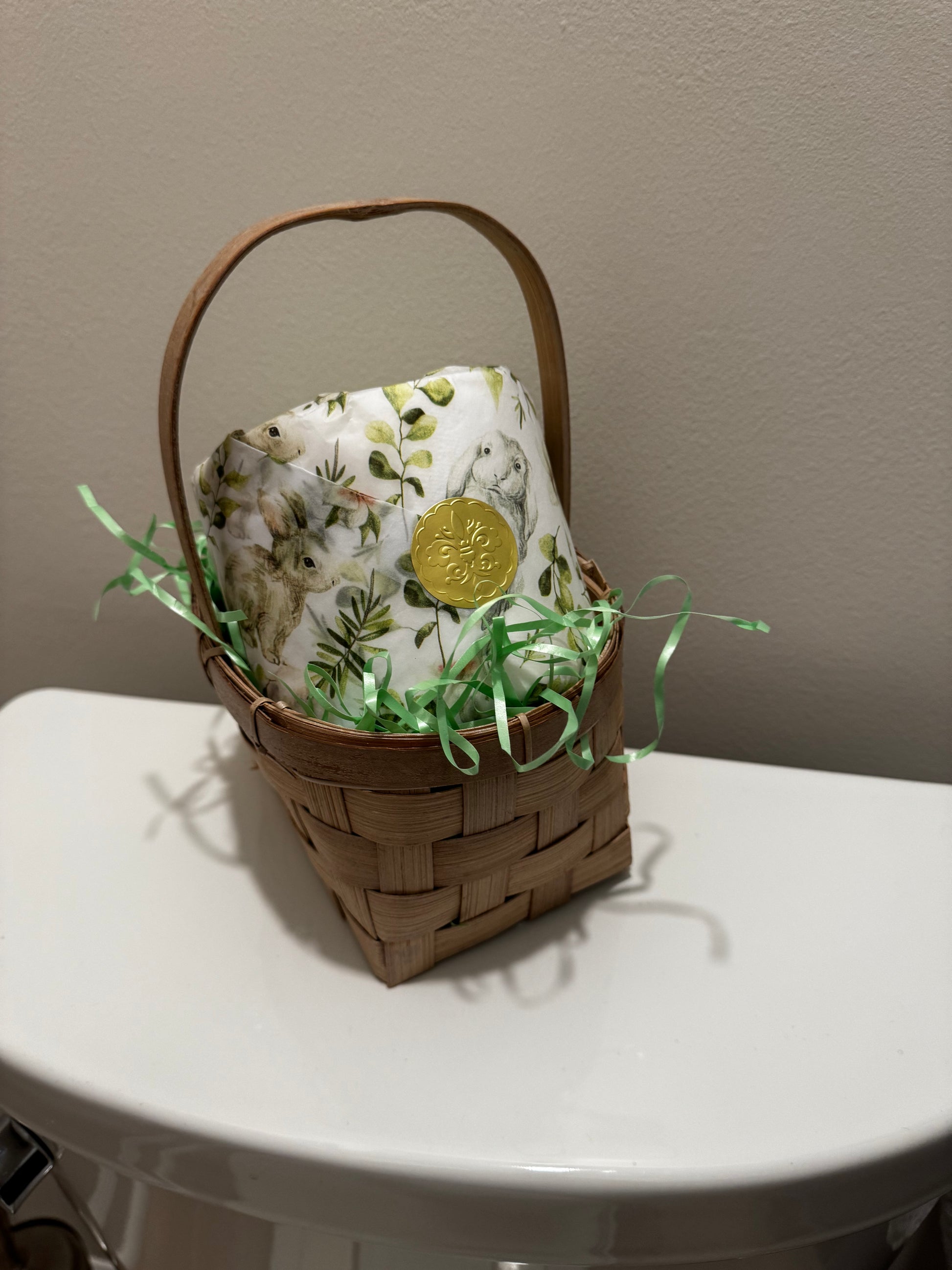 Add a touch of elegance to your bathroom with our Easter Bunny Decorative Wrapped Bathroom Toilet Tissue Gift Package. Featuring premium tissue wrapped in a stylish Easter seasonal pattern, this set transforms a simple item into a charming accent. Perfect as a cozy home addition or a unique gift for Easter, it offers a blend of practicality and festive flair. Ideal for hostess gifts, tokens of appreciation, or spreading Easter cheer. Elevate your decor with grace and style with this thoughtful and stylish gift.
